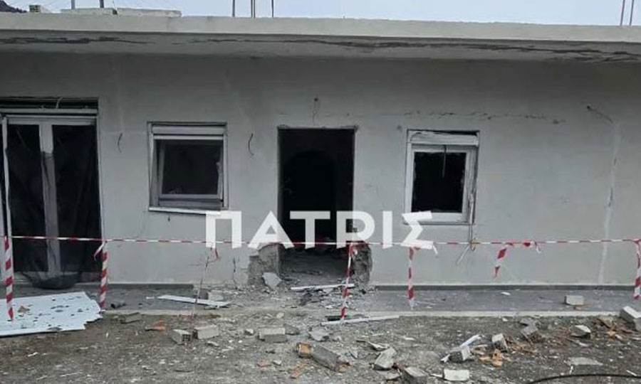 Το σπίτι στα Βορίζια που τοποθετήθηκε χθες ο εκρηκτικός μηχανισμός.