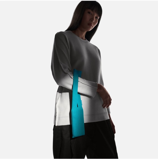 Το iPhone Pocket είναι κατασκευασμένο από ελαστικό νάιλον και πολυεστέρα, με πιέτες που θυμίζουν τη γνωστή συλλογή Pleats Please του Issey Miyake.