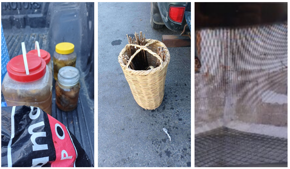 Εντοπίστηκε επίσης κεφάλι αγρινού, ποσότητα 29 κιλών κατεψυγμένου κρέατος, ξόβεργα καθώς και διάφορα άλλα τεκμήρια που φαίνεται να σχετίζονται με τη λαθροθηρία.