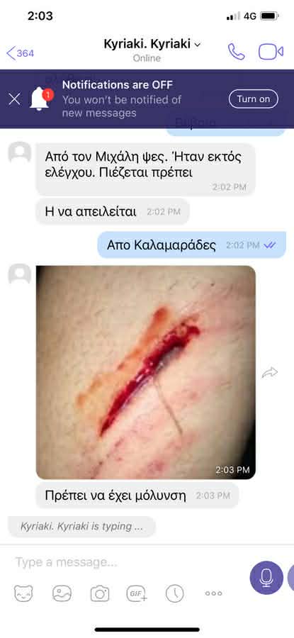 Στο διαδίκτυο εντοπίζεται - και αυτή - η φωτογραφία που δημοσίευσε το πρωί της Πέμπτης 16 Απριλίου, ο Μακάριος Δρουσιώτης, που φέρεται να δείχνει τραυματισμό της Σαντη από τον πρώην δικαστή.