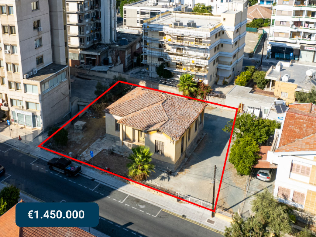 Το ακίνητο βρίσκεται στο κέντρο της Λευκωσίας, στην οδό Αλκαίου, που είναι παράδρομος μεταξύ των πολυσύχναστων οδών Στασίνου και Πινδάρου.