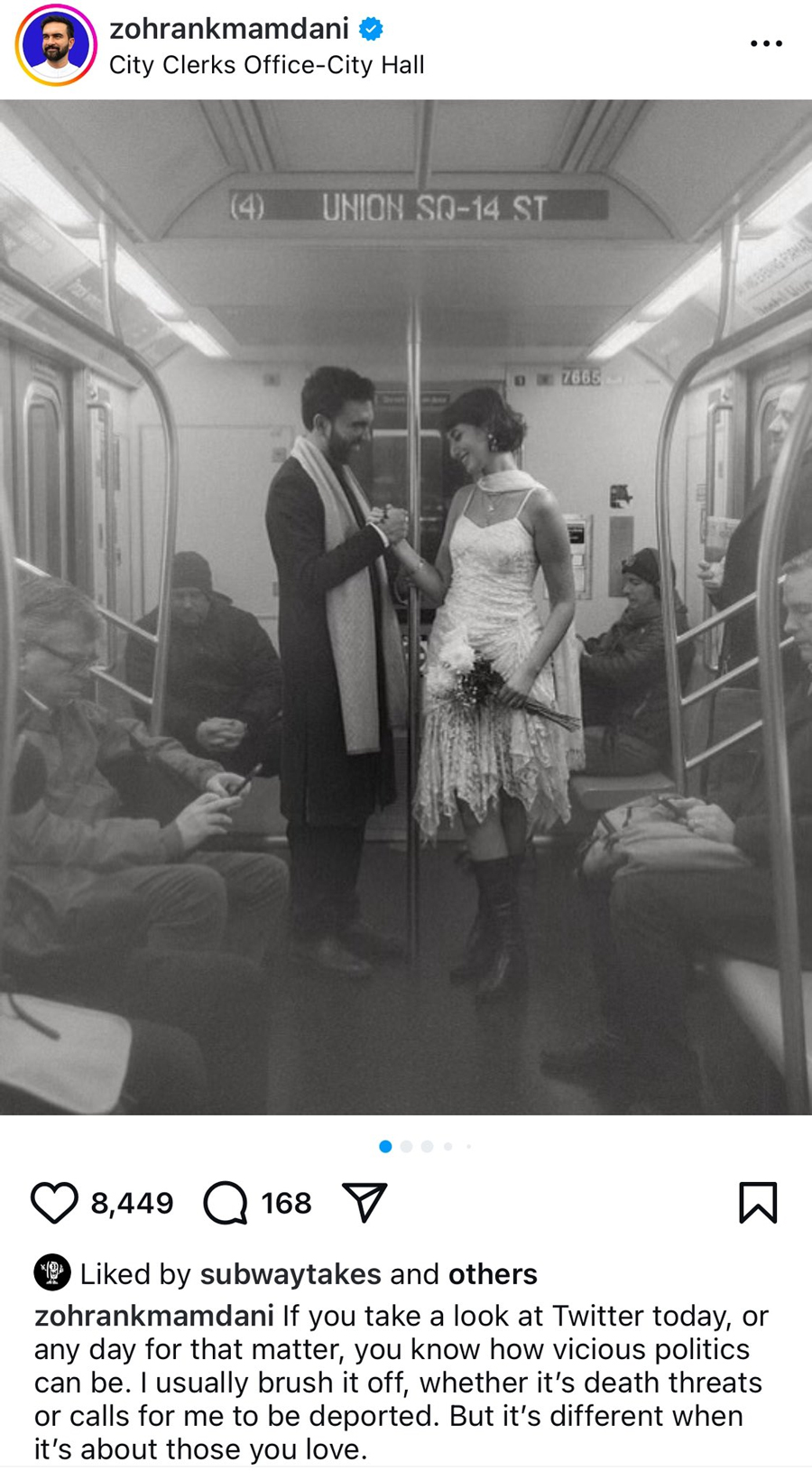 Ο Mamdani δημοσίευσε φωτογραφίες του γάμου τους τον περασμένο Μάιο στο Instagram, υπερασπιζόμενος τη σύζυγό του από διαδικτυακές επιθέσεις κατά τη διάρκεια της προεκλογικής περιόδου: «Η Rama δεν είναι απλώς η σύζυγός μου, είναι μια καταπληκτική καλλιτέχνιδα που αξίζει να την γνωρίσουν με τους δικούς της όρους. Κριτικάρετε τις δικές μου απόψεις, όχι την οικογένειά μου», έγραψε.